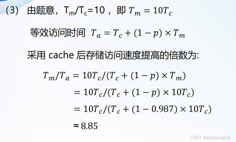 - Tc:Cache 访问时间;Tm:主存访问时间。