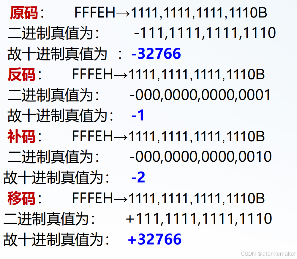 | 机器码类型 | 正数(真值 X>0) | 负数(真值 X<0) |