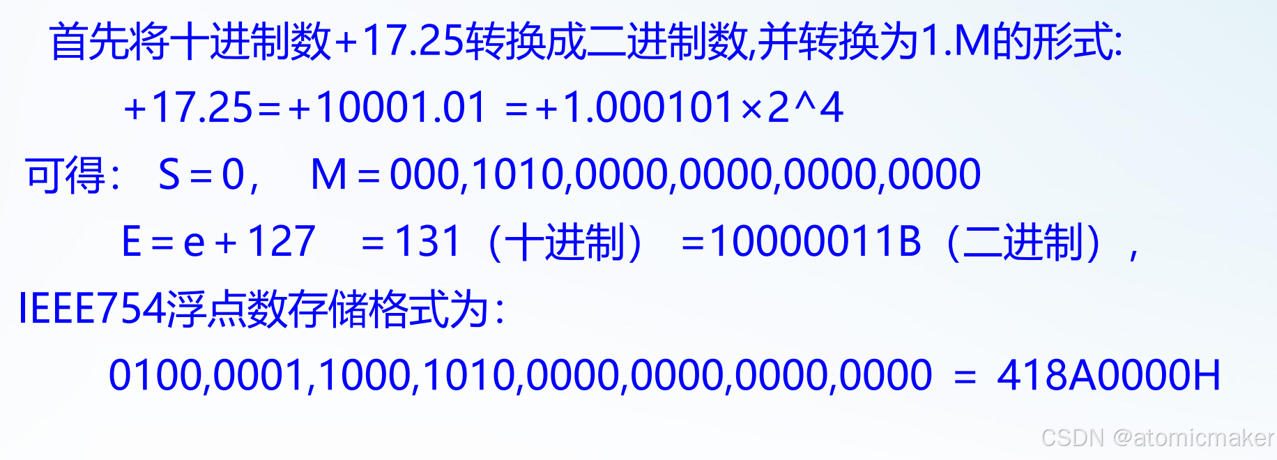 - 尾数部分 M:隐含整数位 1(即尾数实际值 = 1.M),采用二进制小数表示。