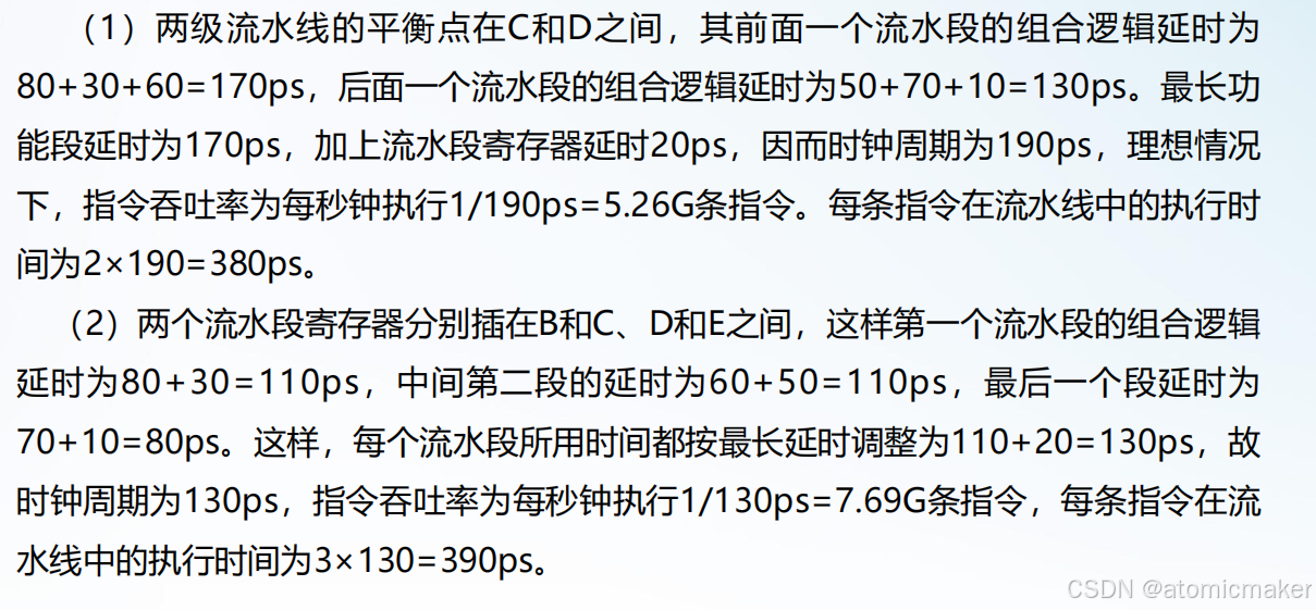 最长段延时 + 寄存器延时,是流水线的基本时间单位。