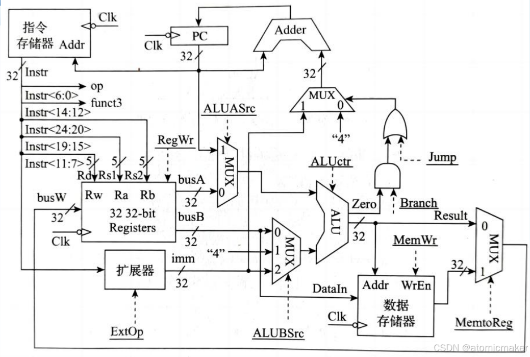 | ALUASrc | 控制 ALU 的第二个操作数来源 |