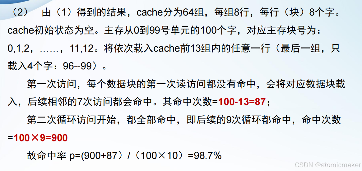 - Nc:Cache 命中的访问次数;Nm:Cache 未命中(缺失)的访问次数。