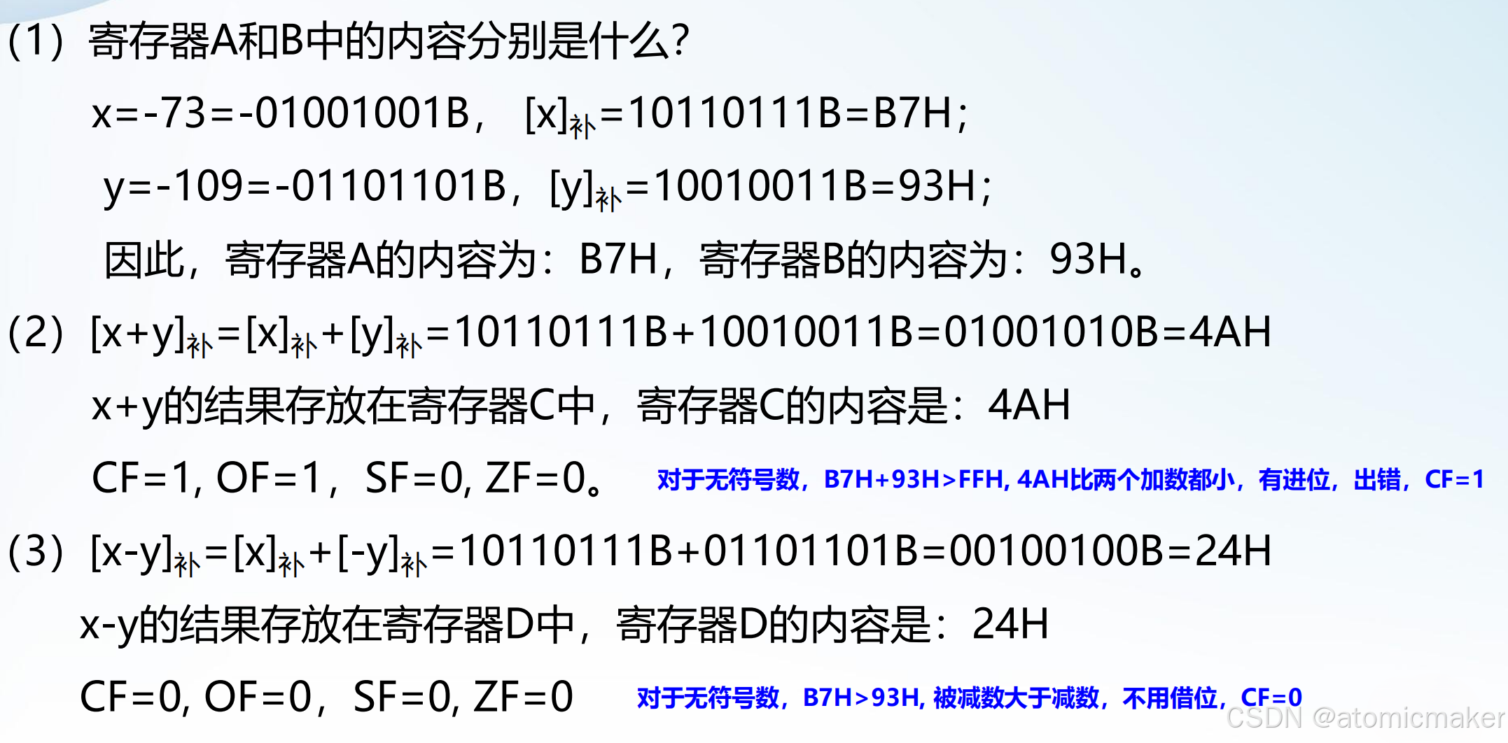 - 补码减法:[X - Y]补 = [X]补 + [-Y]补