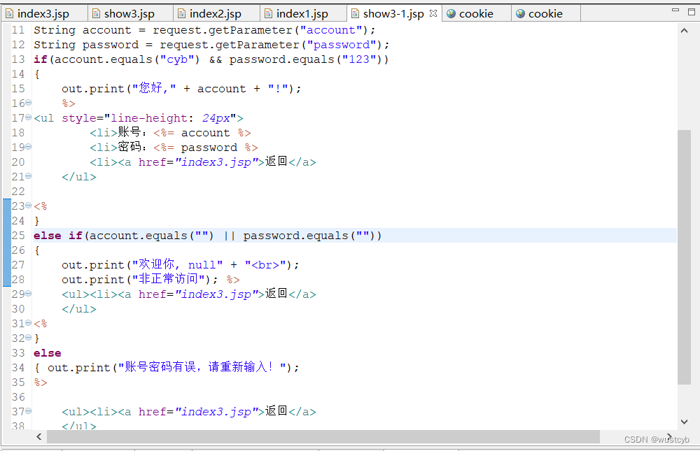 把答案改成了直接显示账号和密码,练习了下<% %>要如何使用