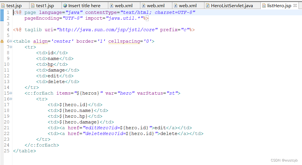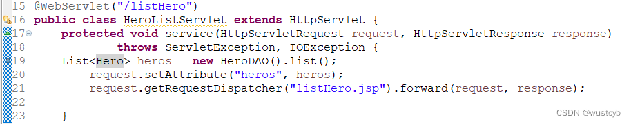 listHero.jsp只是 html文件,定义寻找的东西是什么,本身是没有录入数据的,要运行MVC中的控制器:HeroListServlet.java