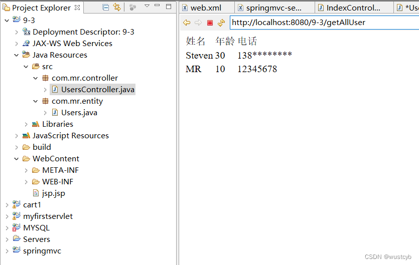 springmvc-servlet.xml中,运用视图定位,视图约定在 /WEB-INF/page/.jsp