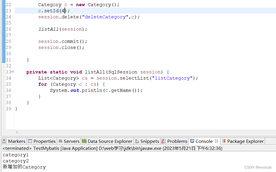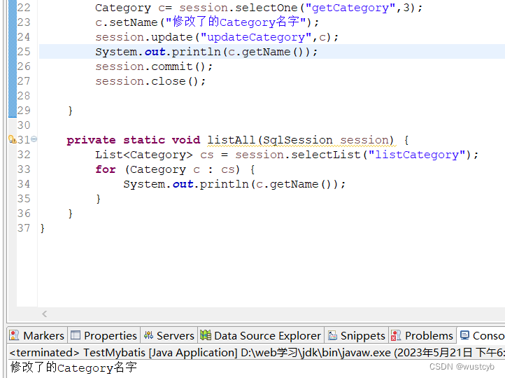 总结:增加和删除都是新建名为c的category类,而查询和更改都是通过selectone语句执行getcategory方法来获取记录,区别的是查询是直接输出,而更改需要set新的name