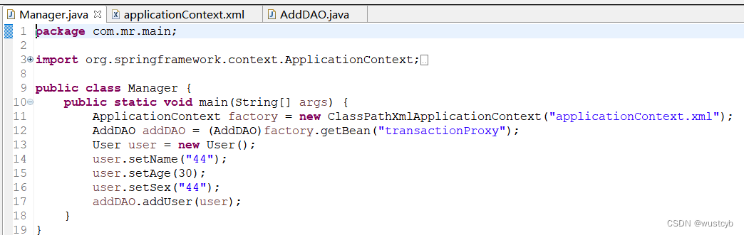 在注释之后,无法正常执行了,也就是说事务中执行方法还要靠这一串语句,而不单单只是起到筛选的作用