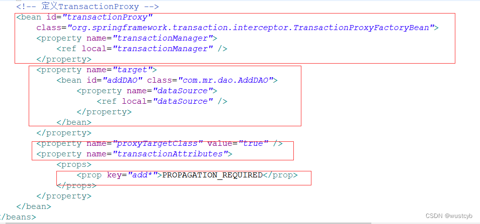 至于第四个框,参考提示,意思是让代理对象中只要以add开头的方法名必须运行在事务中