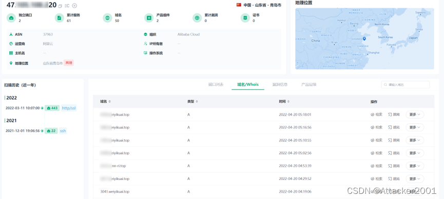 筛选条件包含IP地址、域名、Ip归属、CIDR、注册商、联系电话、创建时间、更新时间、过期时间等;