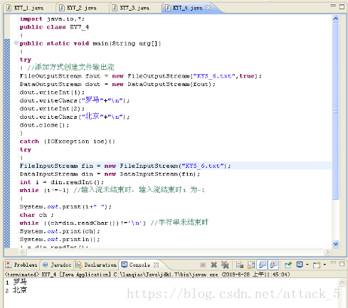 out.write(str+"\n");//将字符串str 通过输出流写入KY5_1.txt 中