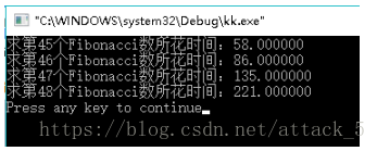 printf("求第45个Fibonacci数所花时间:%f\n",a);