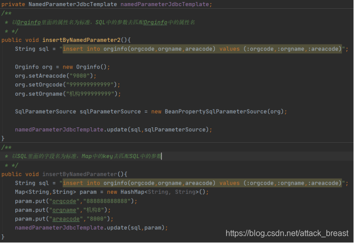 JdbcTemplate基础用法:NamedParameterJdbcTemplate