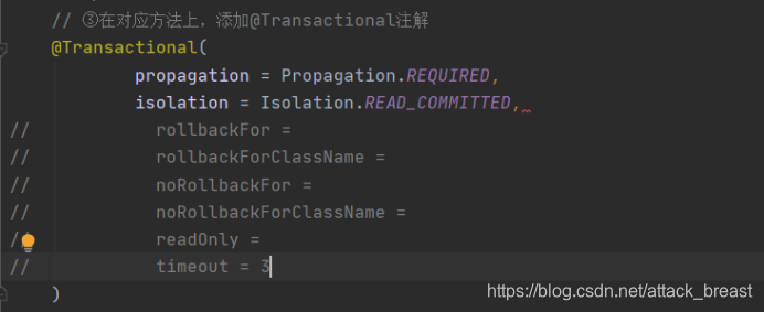 表示这个事务只读取数据,不更新数据,这样可以帮助数据库引擎优化事务。如果是select语句则设置readOnly=true。