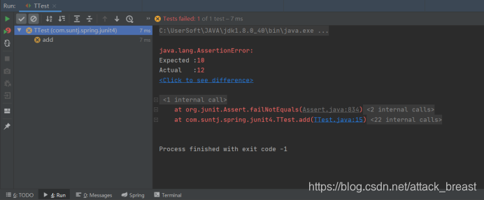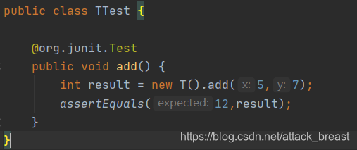 在生成的add方法里面进行编写测试的内容,然后鼠标右击,选择Run XXXTest,然后查看结果