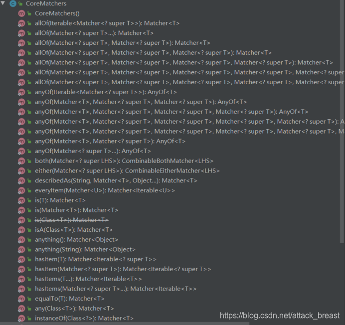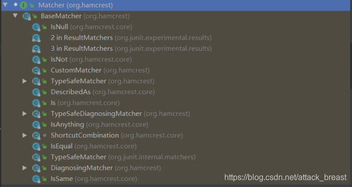 其中第2个参数是:org.hamcrest.Matcher接口,该接口的实现类就1个: