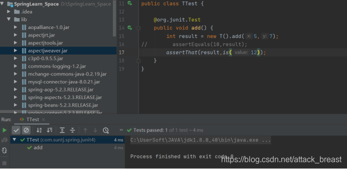 assertThat方法理论上来讲可以替换其他assertXXX方法。该方法有2个参数: