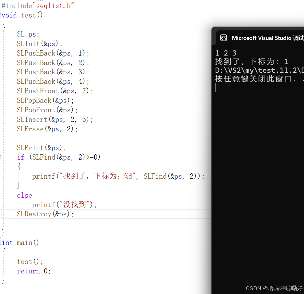 assert(pos >= 0 && pos < ps->size);//确保pos没有越界