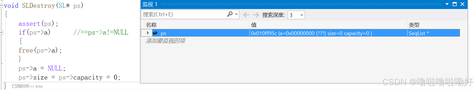 顺序表的底层结构是数组,而在动态顺序表中只有指针a的空间是向系统申请的,所以顺序表的销毁就是要free掉结构体中的数组并且置为空、其他变量置为零。