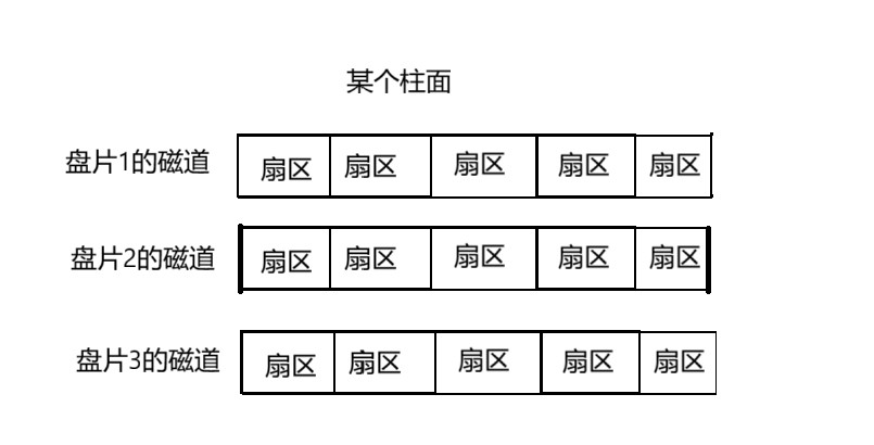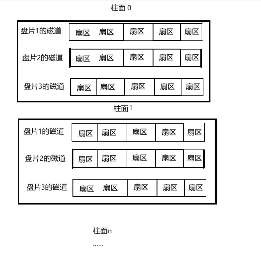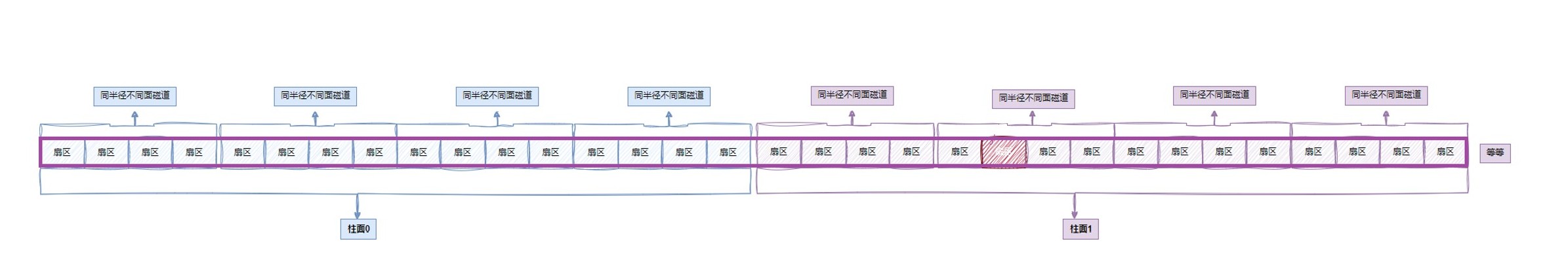 把整个磁盘所有盘面的同一个磁道展开,即柱面展开: