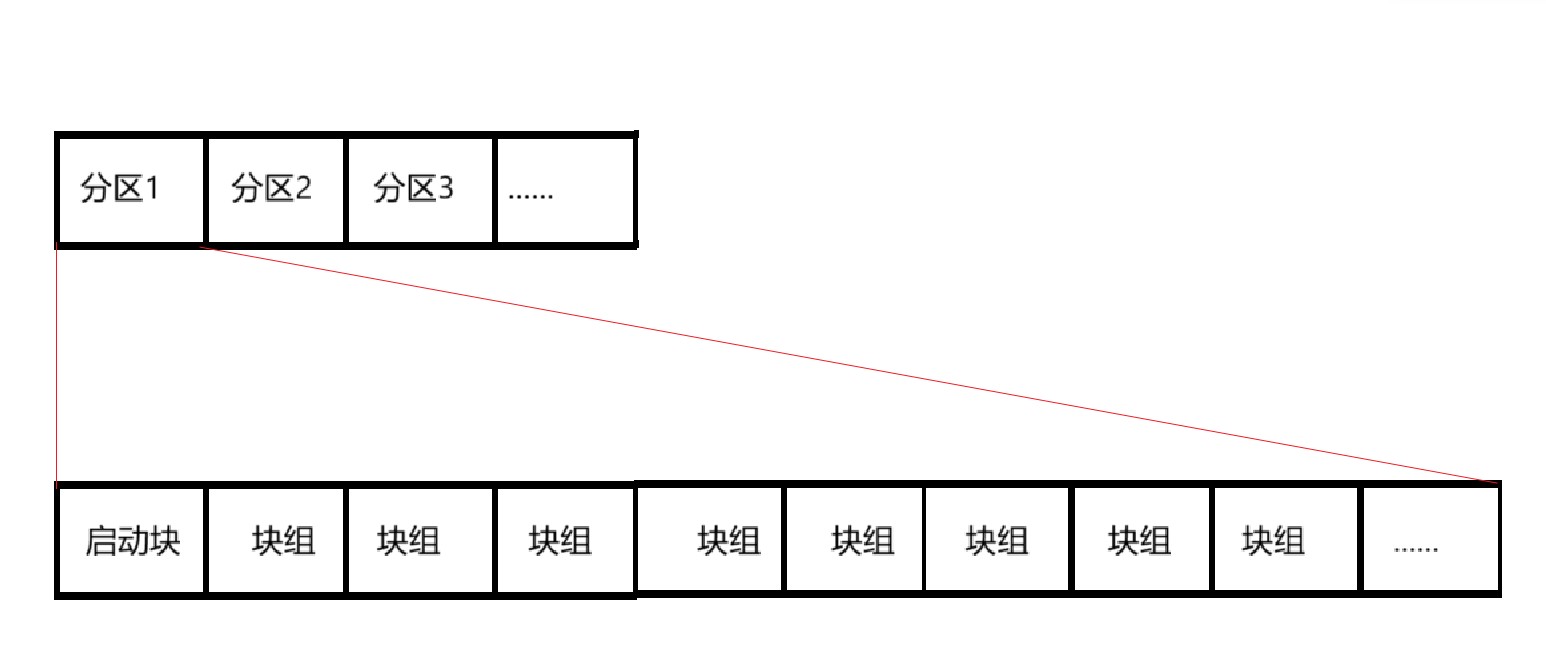 ext2文件系统将整个分区划分成若干个同样的块组(Block Group),每个分区前面都有一个启动块(Boot Block/Sector),如下图所示。