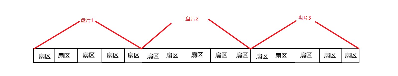 一个盘片里面又有多个扇区,所以上图我们就可以划分为: