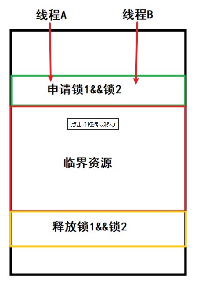 为了方便表述,假设现在线程A,线程B必须同时持有锁1和锁2,才能进行后续资源的访问。