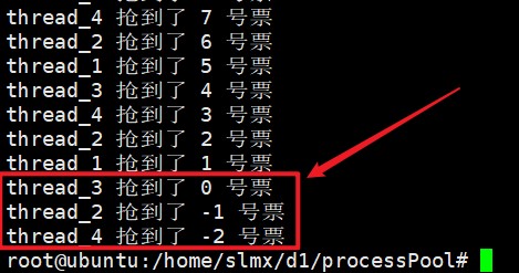 当我们运行结束后,我们发现,票被抢到了负数,为什么会出现这种现象呢?