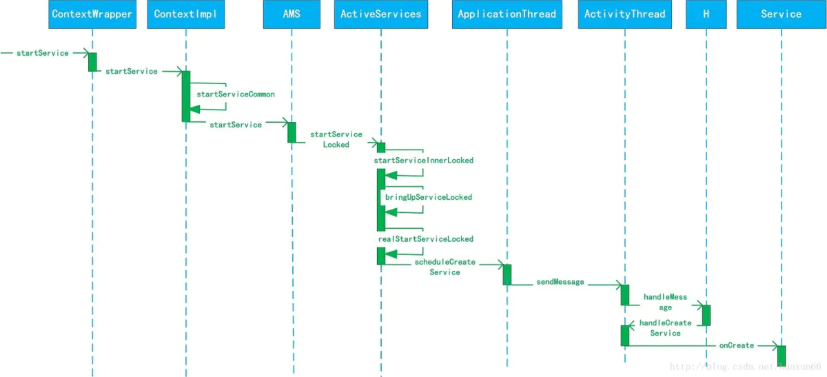 public ComponentName startService(IApplicationThread caller, Intent service,