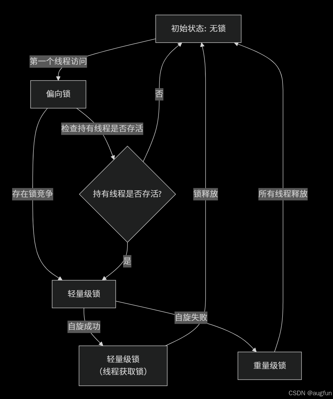 下图直观地展示了synchronized锁在对象Mark Word中的升级过程与状态流转: