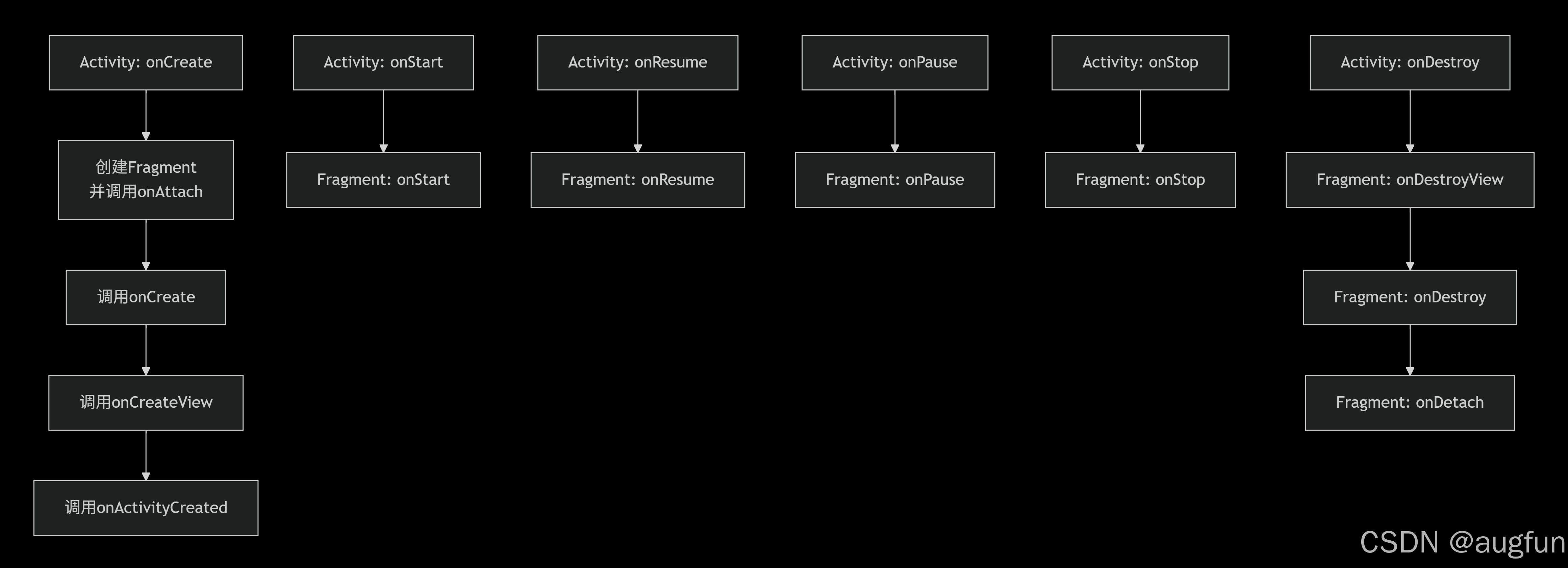 下图直观地展示了Activity如何作为“容器”,驱动其内部Fragment的生命周期状态变化:
