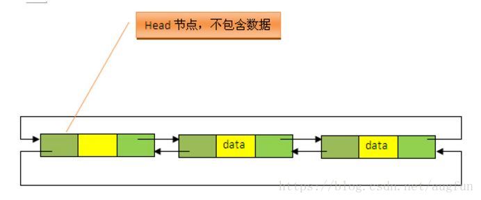 1、从源码中很明显可以看出,LinkedList的实现是基于双向循环链表的,且头结点中不存放数据,如下图;