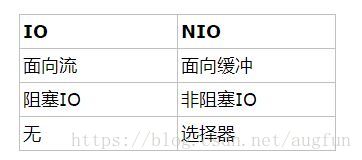 下表总结了Java IO和NIO之间的主要区别:
