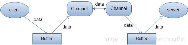 上面的图描述了从一个客户端向服务端发送数据,然后服务端接收数据的过程。客户端发送数据时,必须先将数据存入Buffer中,然后将Buffer中的内容写入通道。服务端这边接收数据必须通过Channel将数据读入到Buffer中,然后再从Buffer中取出数据来处理。