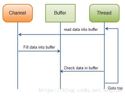 注意第二行,从通道读取字节到ByteBuffer。当这个方法调用返回时,你不知道你所需的所有数据是否在缓冲区内。你所知道的是,该缓冲区包含一些字节,这使得处理有点困难。假设第一次 read(buffer)调用后,读入缓冲区的数据只有半行,例如,“Name:An”,你能处理数据吗?显然不能,需要等待,直到整行数据读入缓存,在此之前,对数据的任何处理毫无意义。所以,你怎么知道是否该缓冲区包含足够的数据可以处理呢?好了,你不知道。发现的方法只能查看缓冲区中的数据。其结果是,在你知道所有数据都在缓冲区里之前,你必须检查几次缓冲区的数据。这不仅效率低下,而且可以使程序设计方案杂乱不堪。例如: