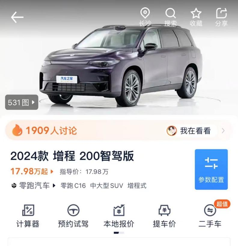已经有三个选择了,17.98万的零跑C16智驾版,