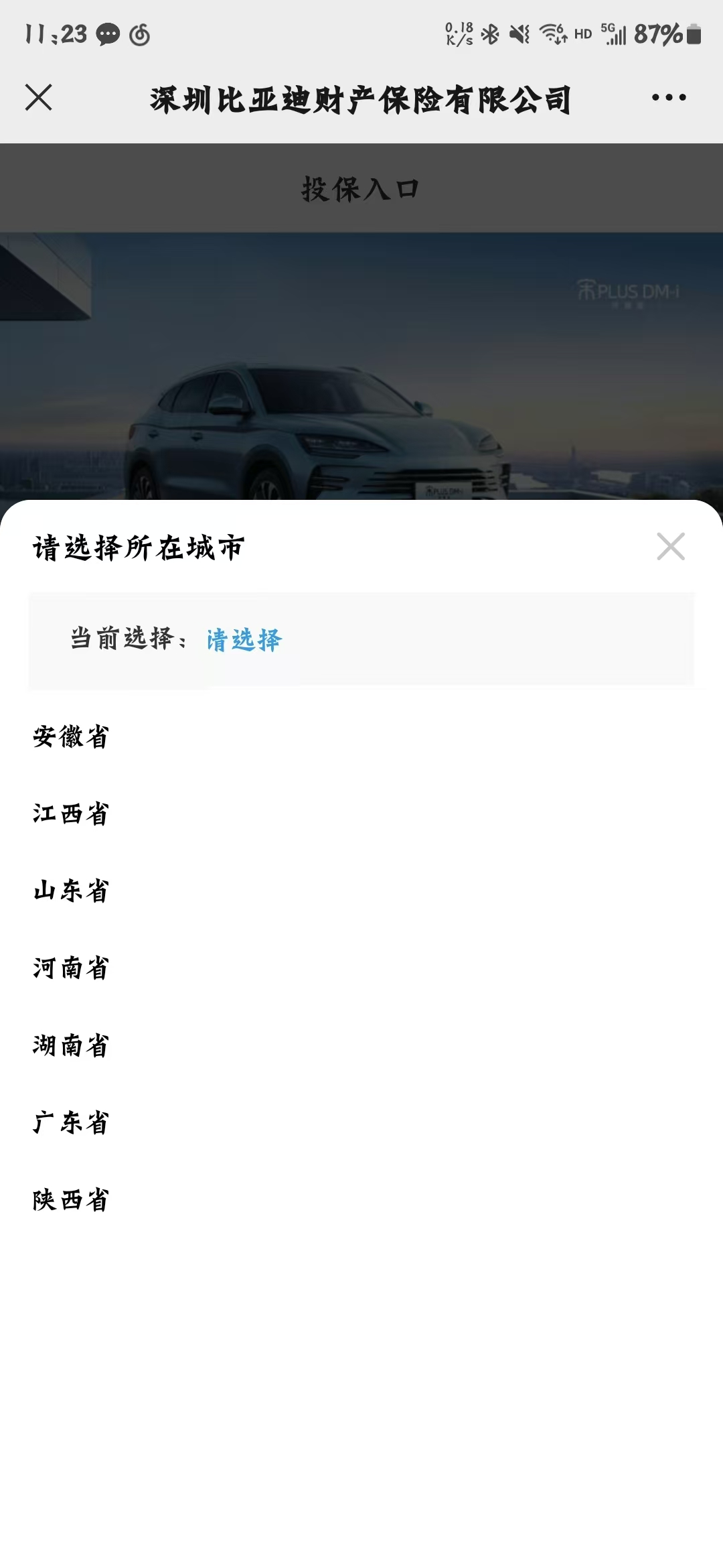 隔壁比亚迪就有车险,虽然只开放了7个省