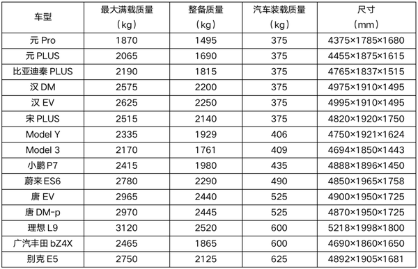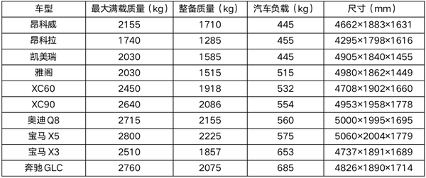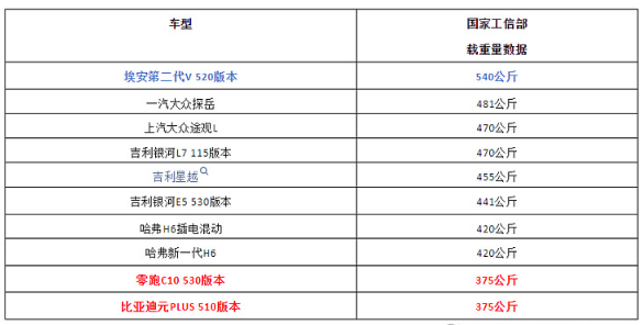 最近被曝光的各家汽车载重量,