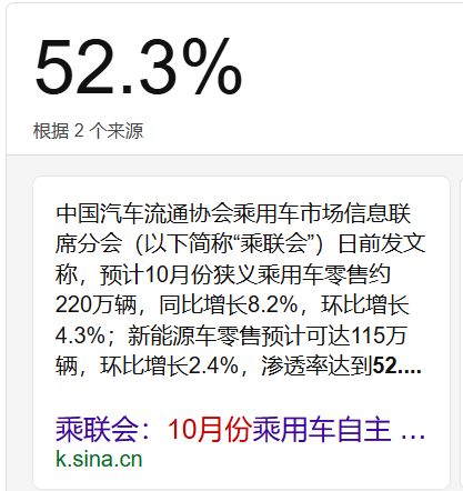 9月、10月份新能源销量渗透率已经连续两个月突破50%,