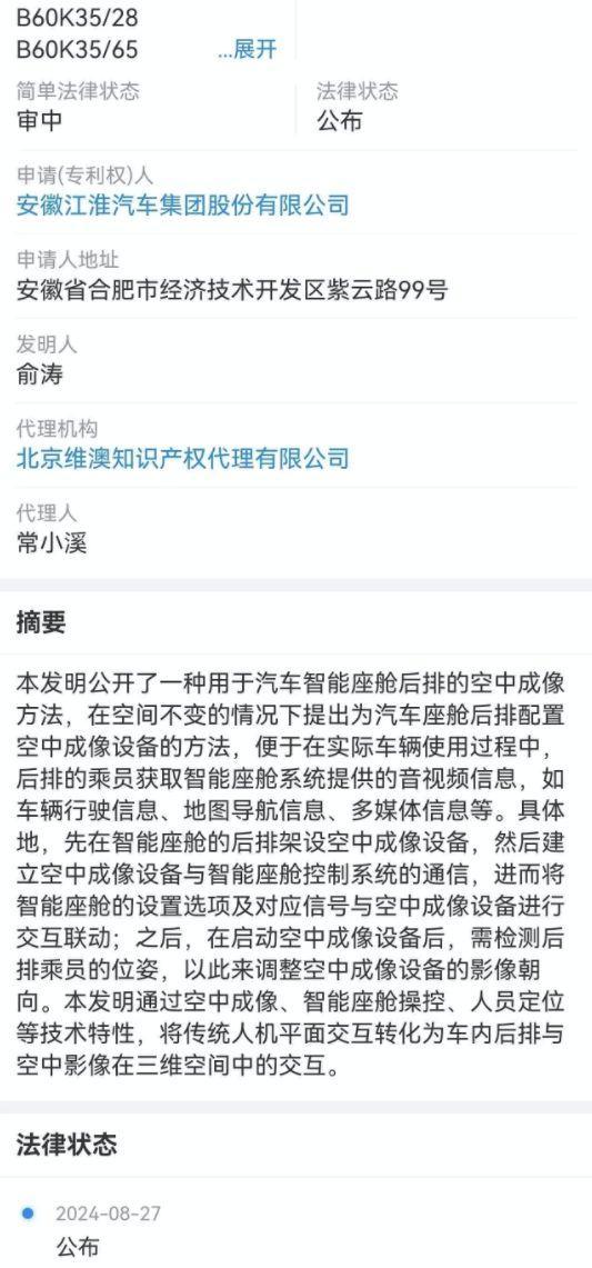 这个江淮早在8月份就已经申请专利了,