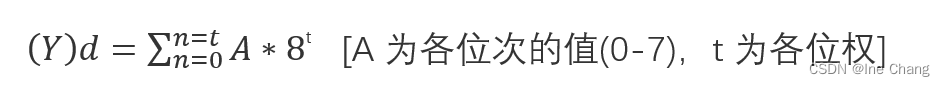 八进制转为十进制与二进制转为十进制的方法相同,公式如下: