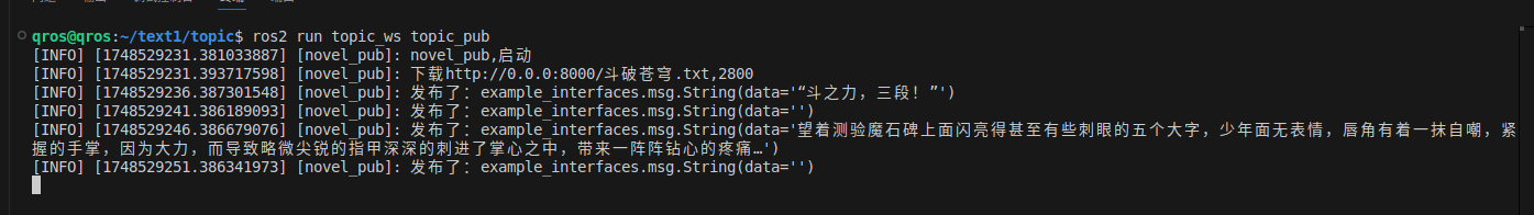 ros2 run topic_ws topic_pub # ros2运行topic_ws文件下的topic_pub可执行文件