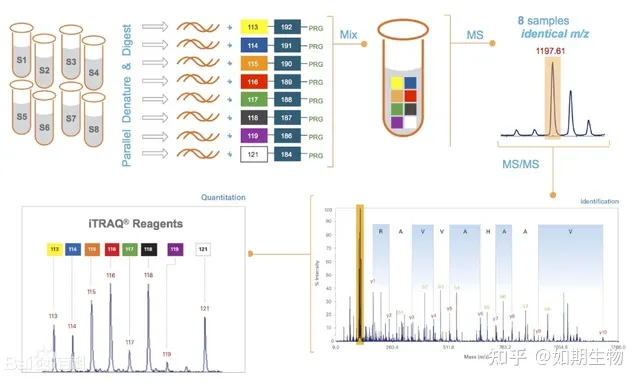 iTRAQ是一种由ABSCIEX公司开发的体外同位素标记技术,用于相对和绝对定量蛋白质。该技术能同时比较8种样品的蛋白表达,适用于各种类型的蛋白质分析,包括低丰度和极端pH值的蛋白质。实验涉及蛋白定量、还原烷基化、酶解、iTRAQ标记、LC-MS-MS分析和数据处理。其优点在于高通量、标记完全、定量敏感且适用范围广。