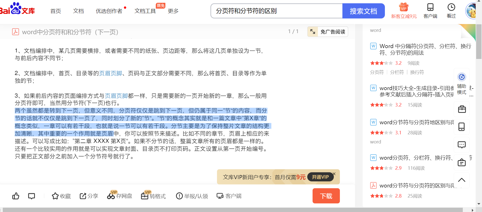 当成一个回车吧,回车是换行,而分节符是换节,每节的格式相互独立。