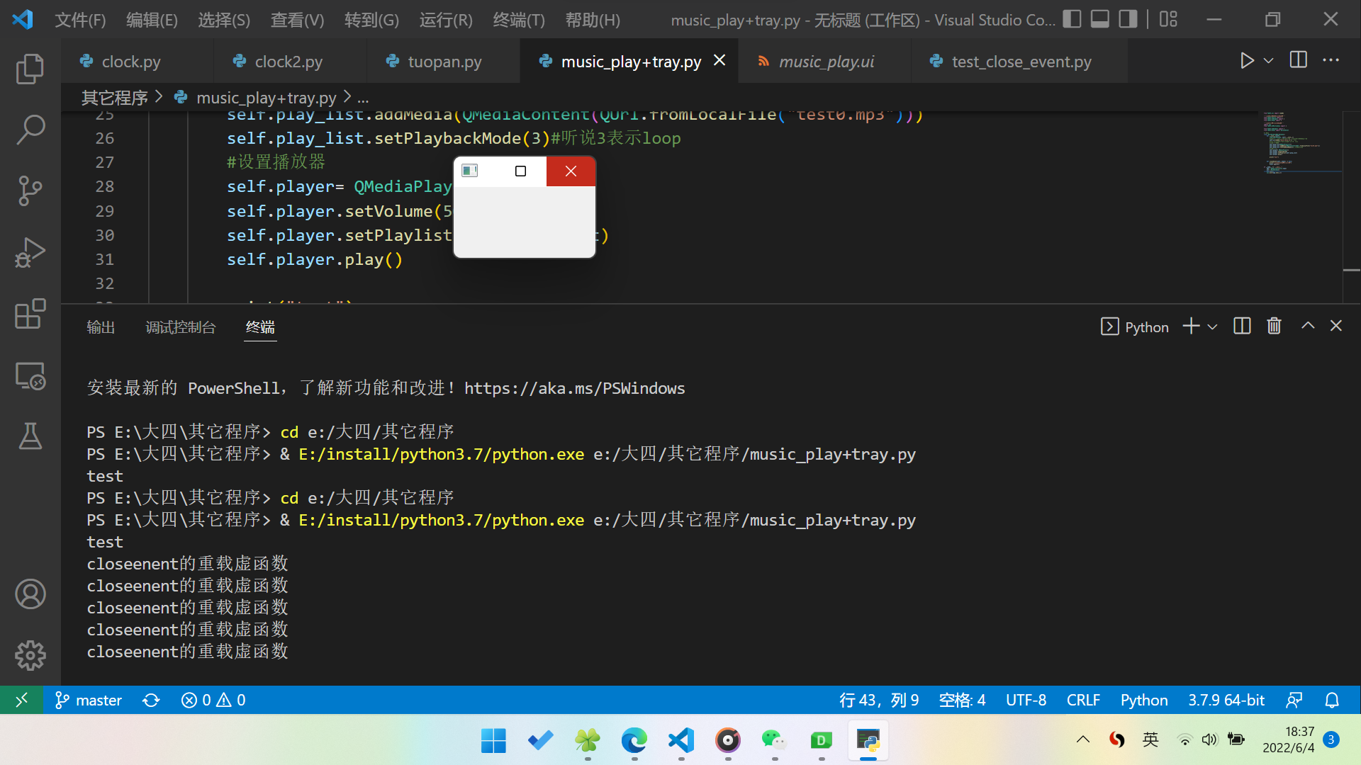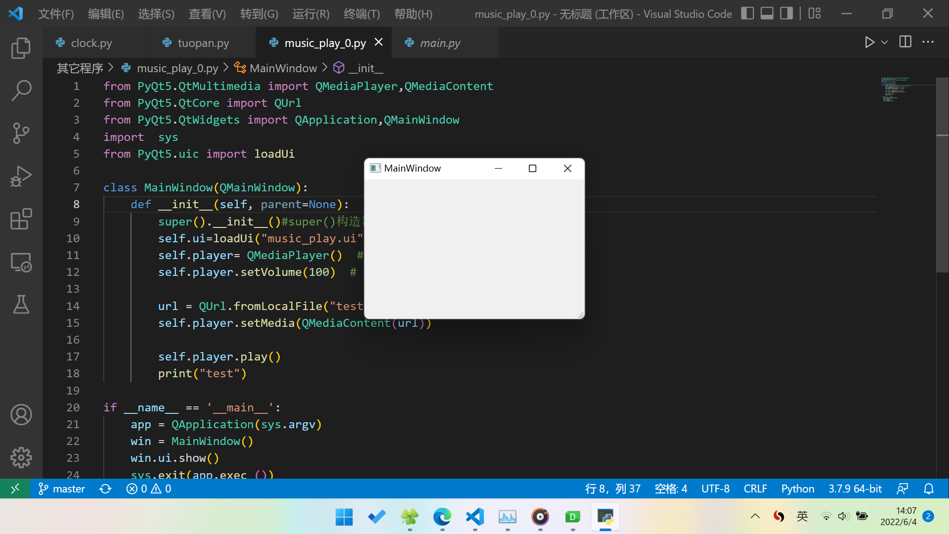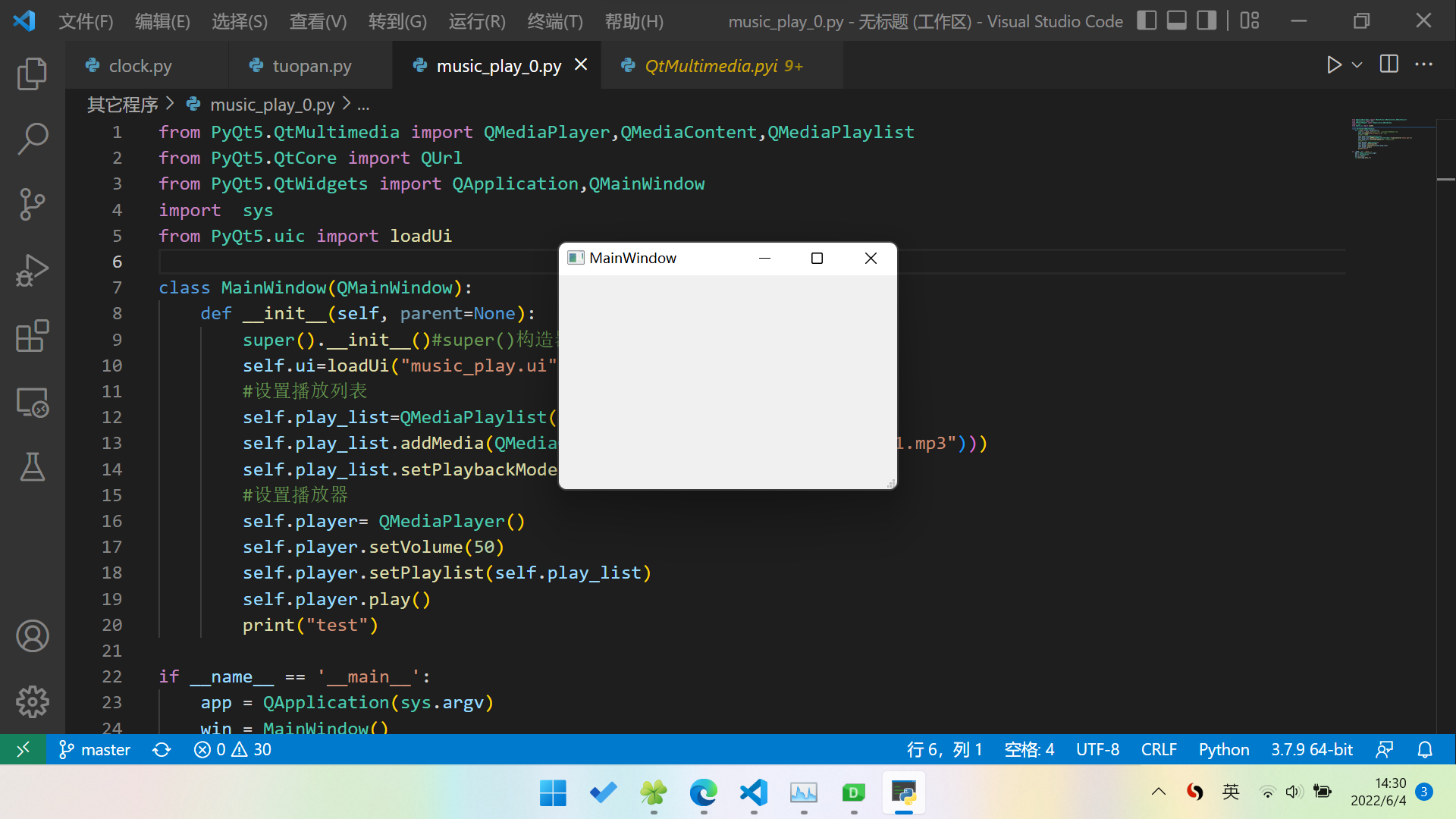 第一个版本:pyQT播放音乐