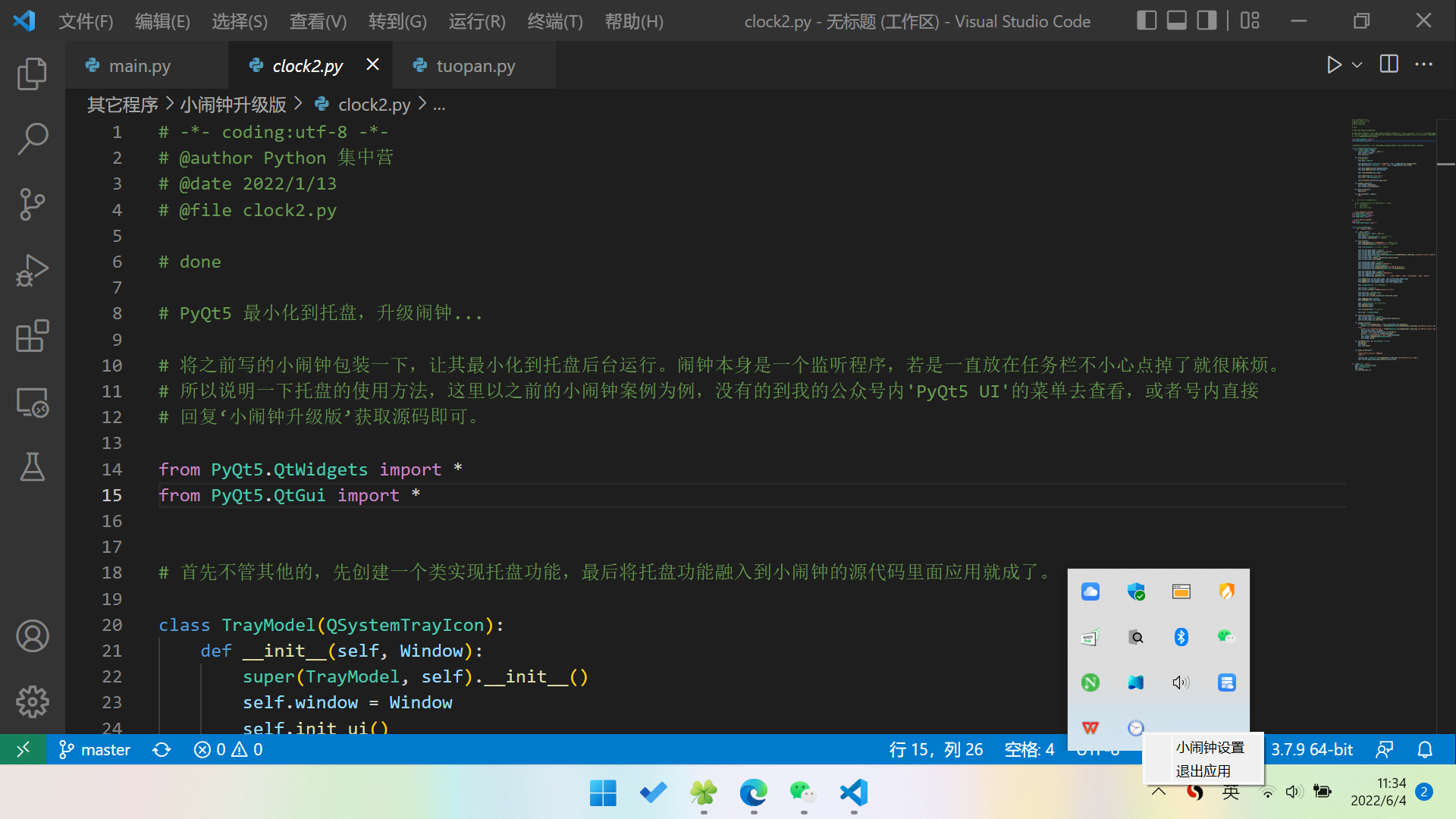 # 首先不管其他的,先创建一个类实现托盘功能,最后将托盘功能融入到小闹钟的源代码里面应用就成了。