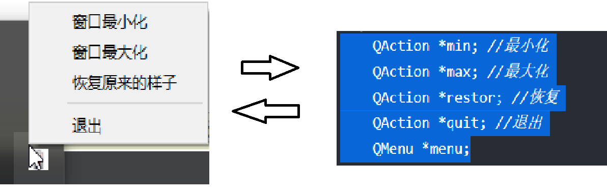 查了查,托盘菜单界面和代码是这么个对应的关系。
