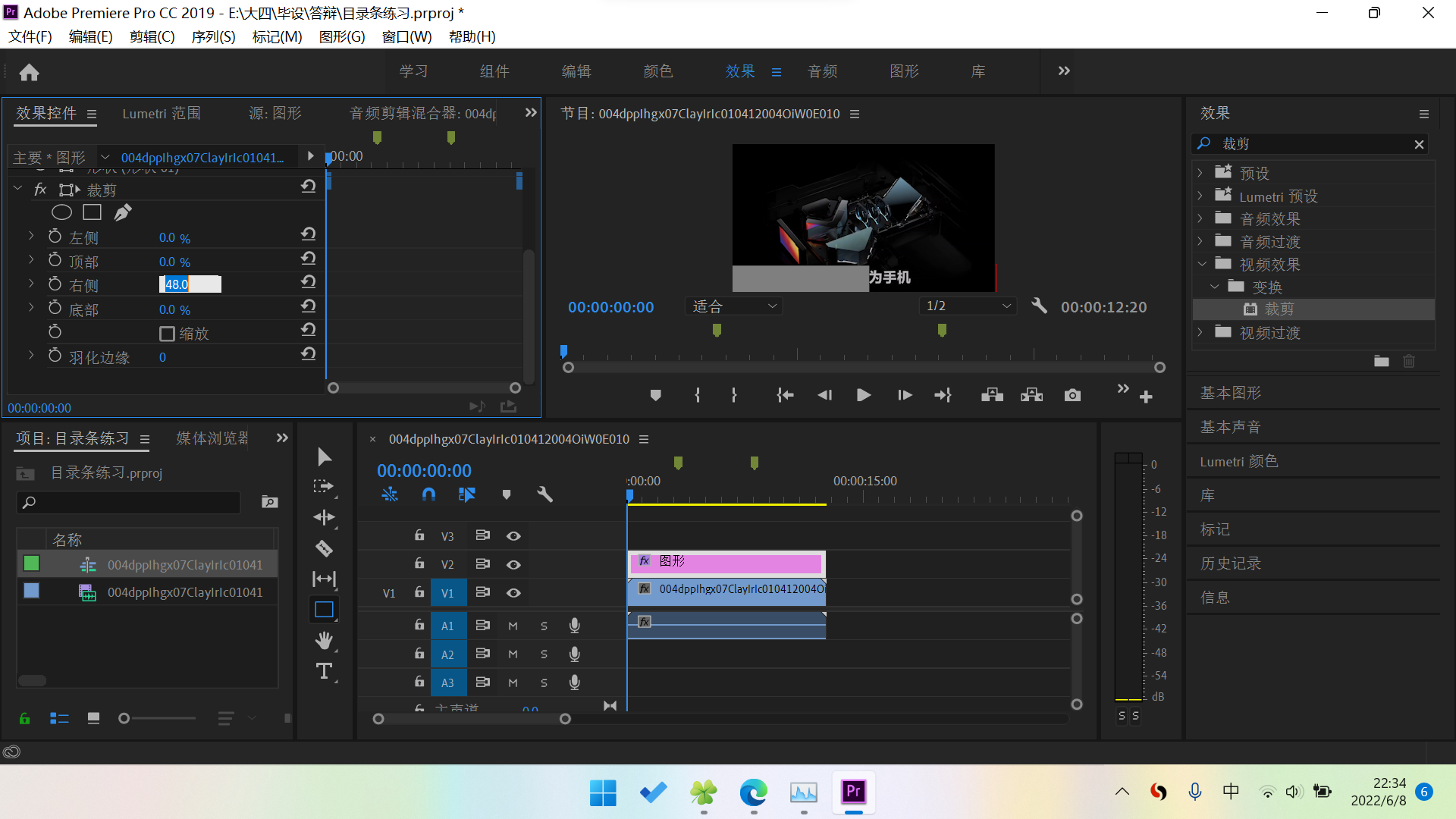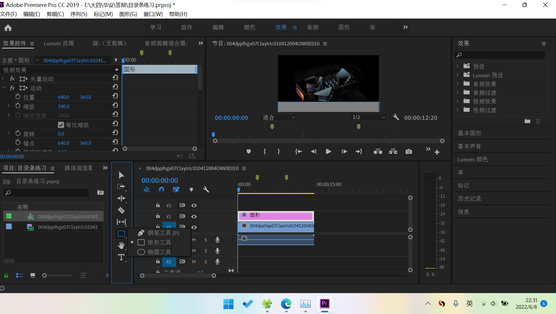 矩形按钮如图所示,调节矩形宽度使之等于视频宽度。