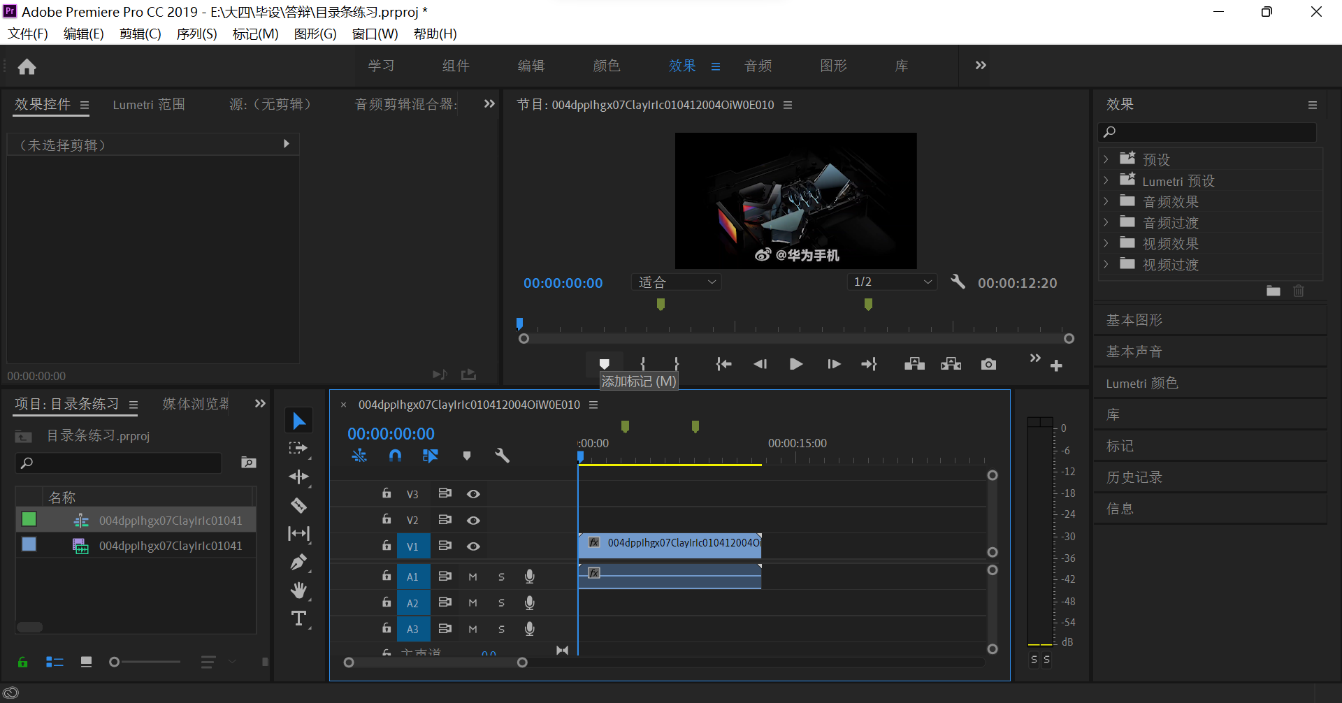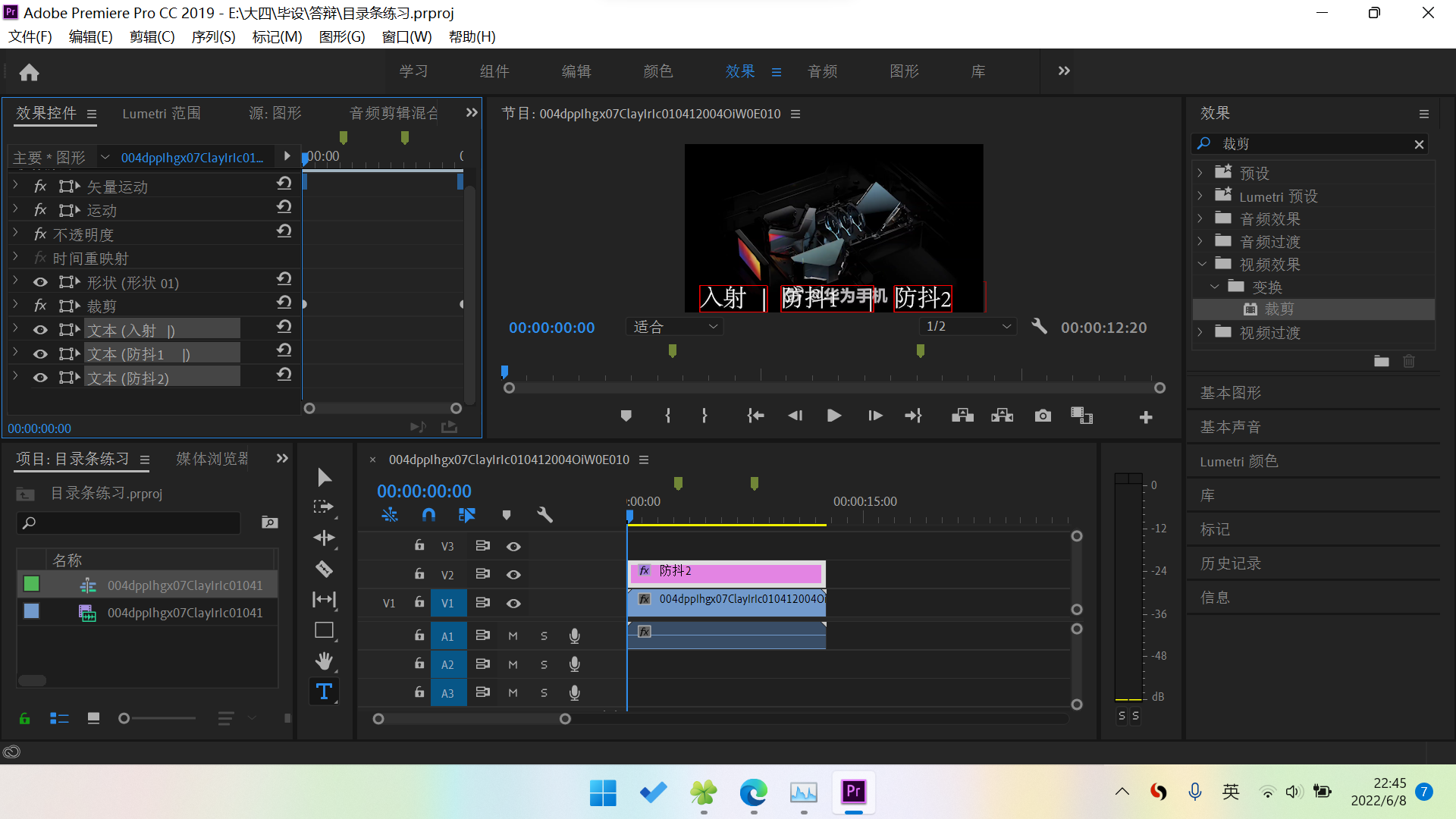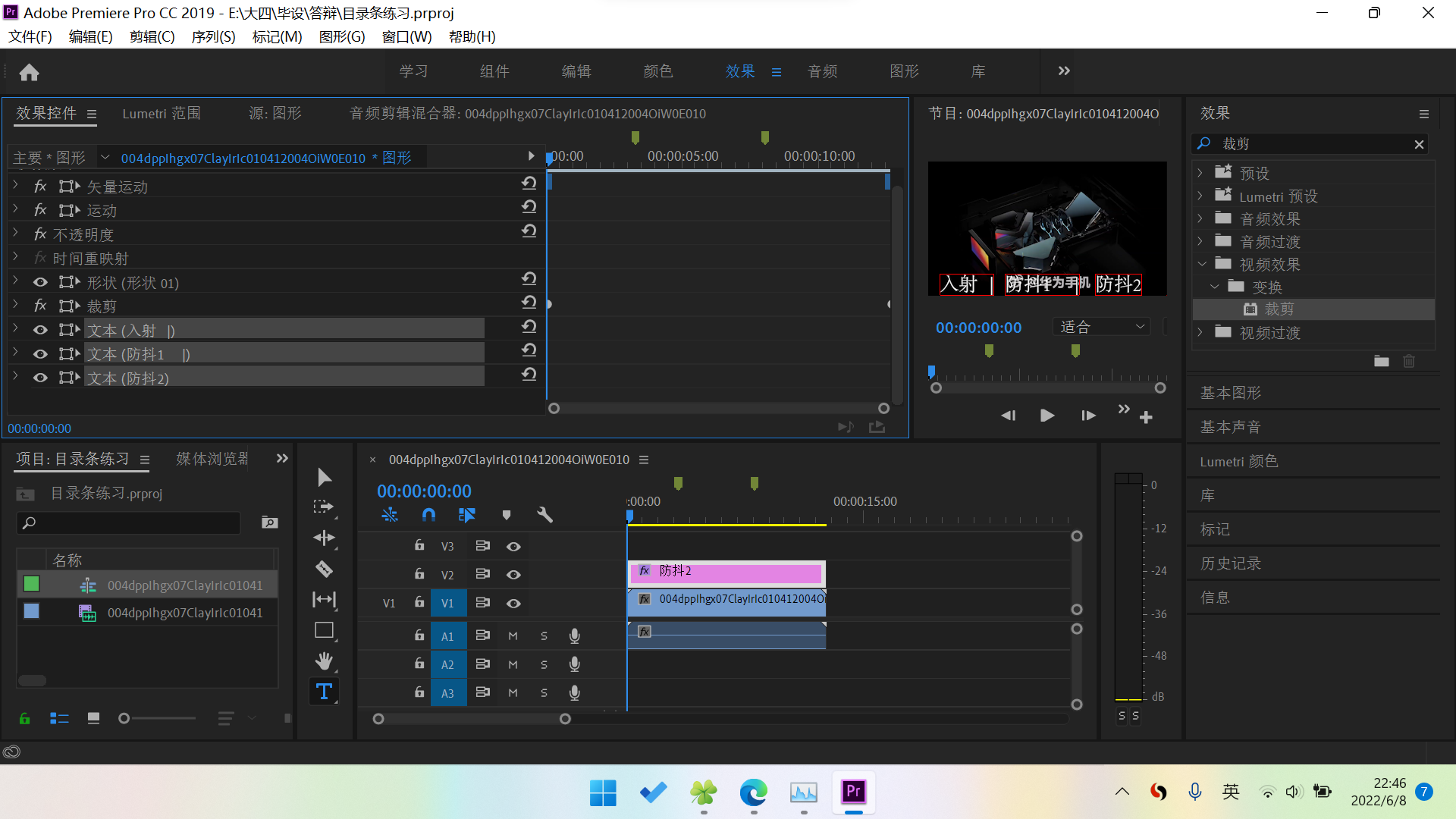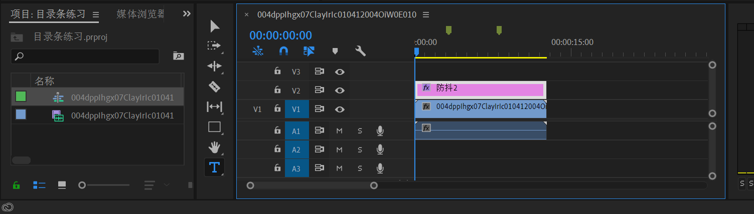 m是标记的快捷键。这里分了3段,两个标记;对应光的射入,防抖1,防抖2,三个子目录。