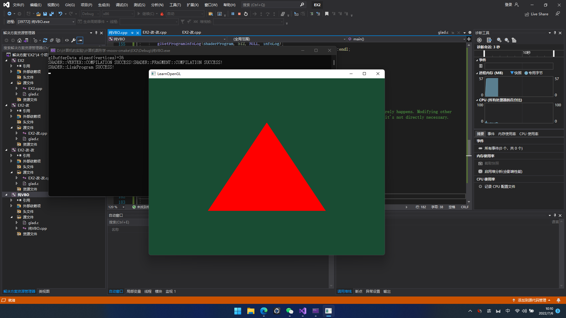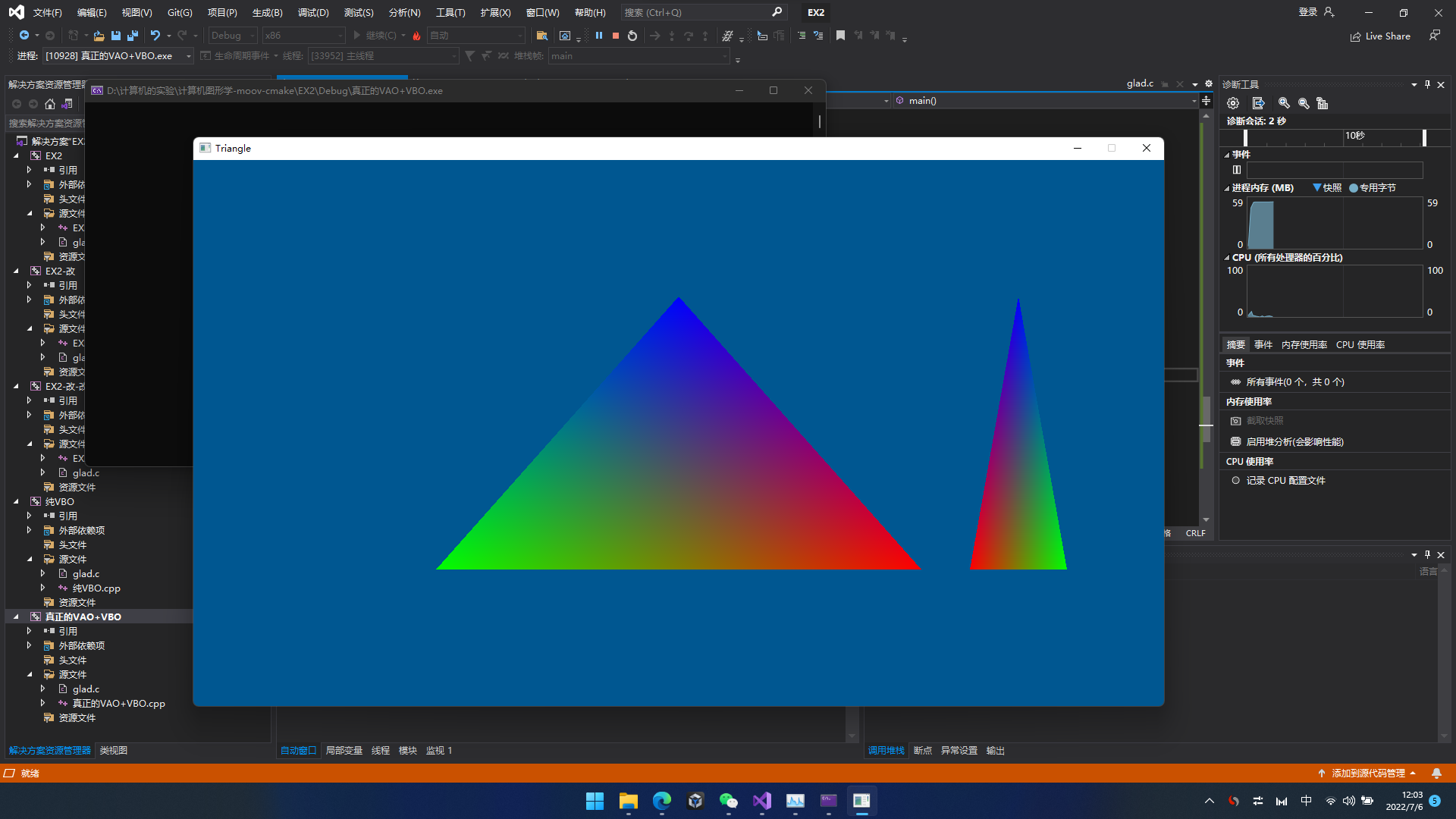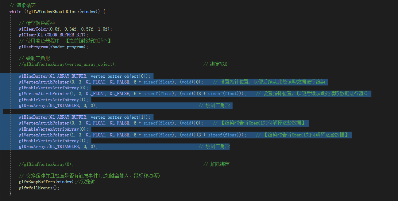 同时也认识到了,你这里面的,《一个VAO,两个VBO,两个三角形》,的那个最终运行成功的代码,VAO了个寂寞……